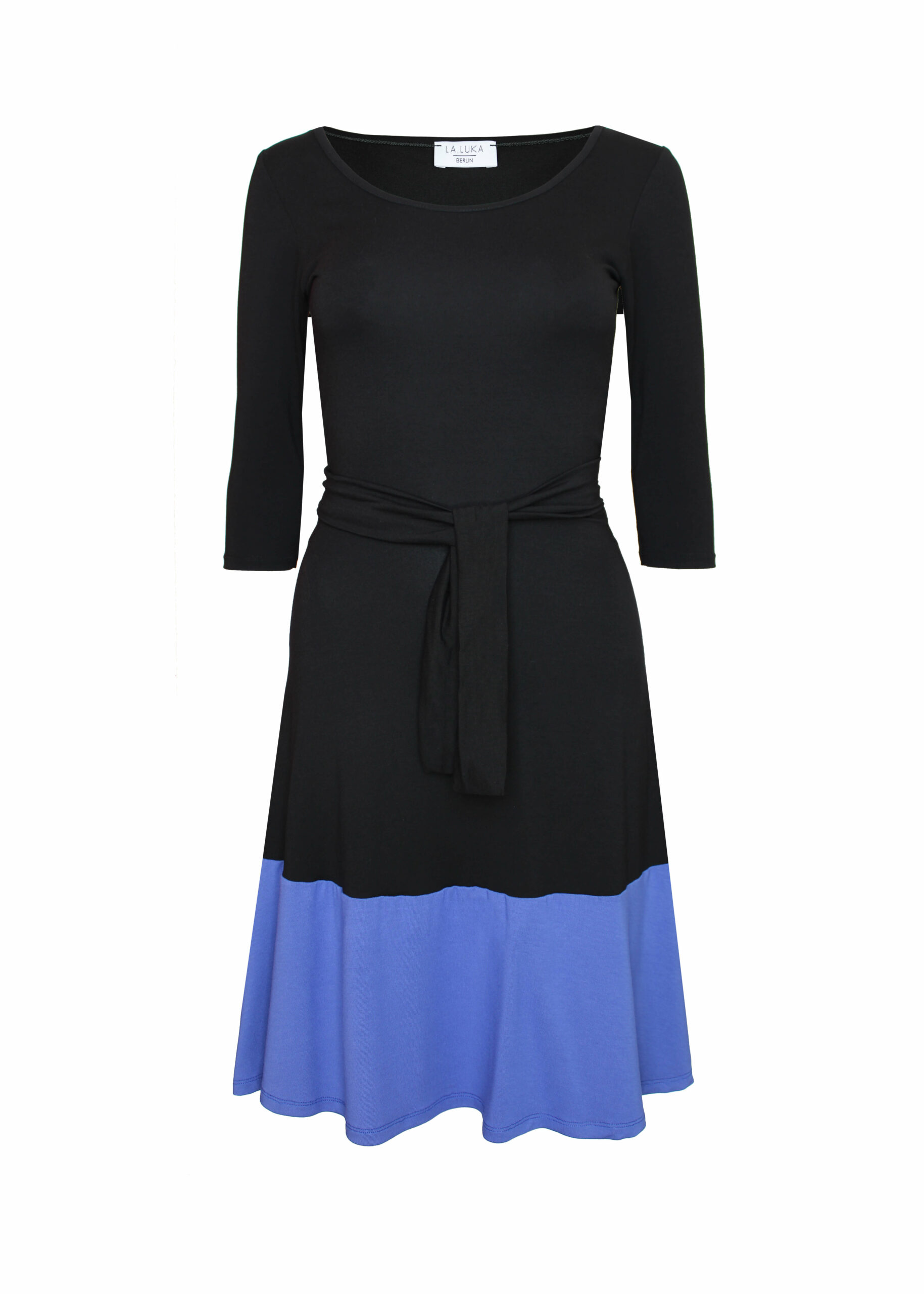 LA.LUKA Berlin – Elegantes knieumspielendes Jerseykleid: Schwarz trifft auf Blau