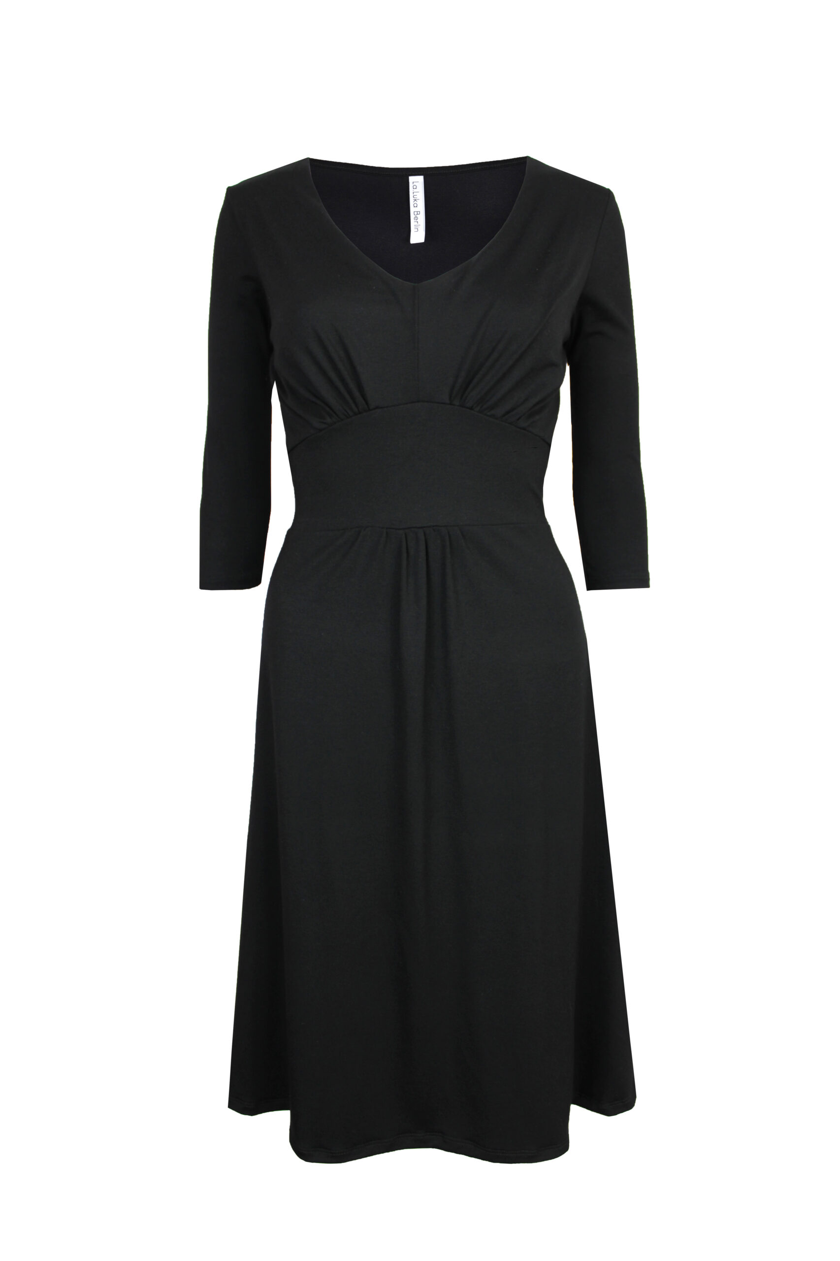 Dieses elegante LA.LUKA BERLIN Kleid besteht aus angenehm weich fallendem Viskosejersey. Das knielange Kleid besticht durch den Elasthan-Anteil mit einem hohem Tragekomfort. Jedes Teil wird ausschließlich in Berlin genäht