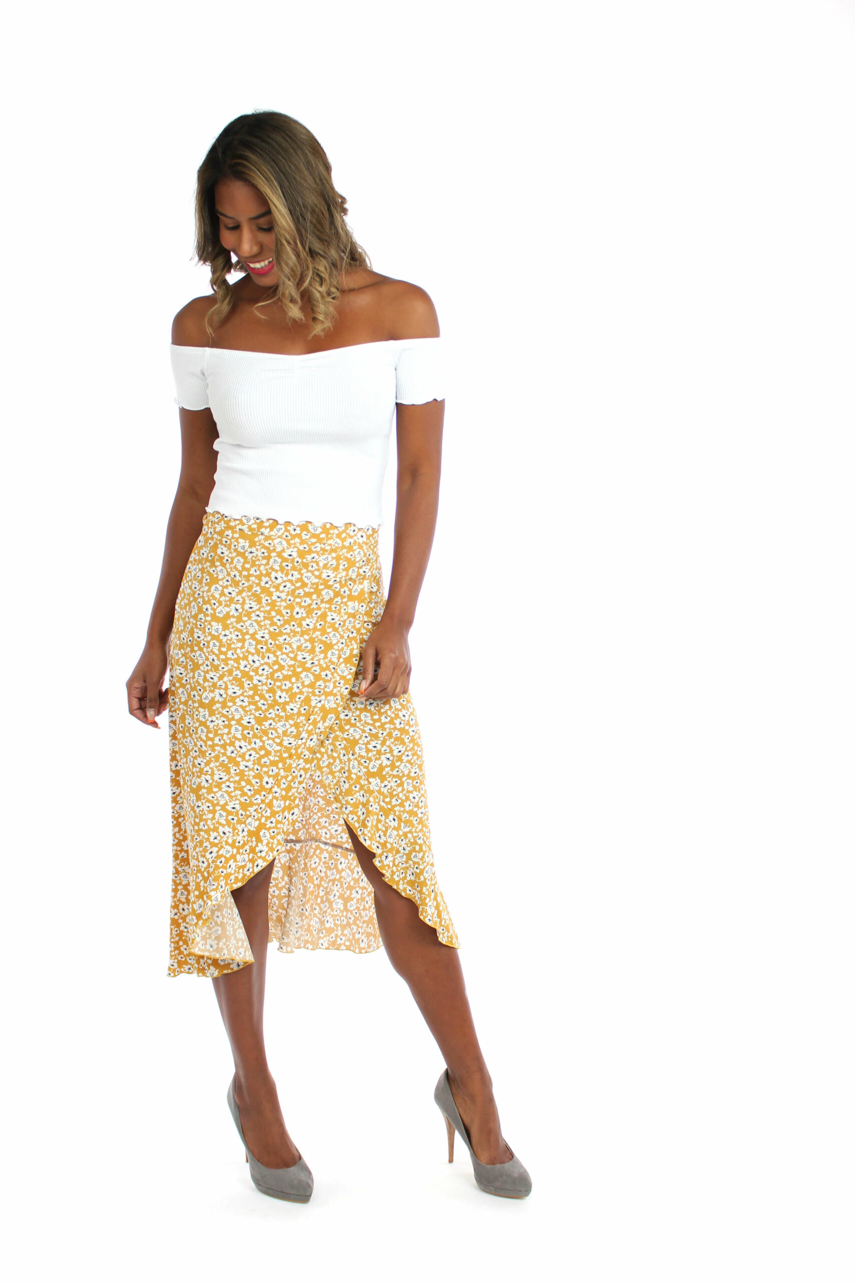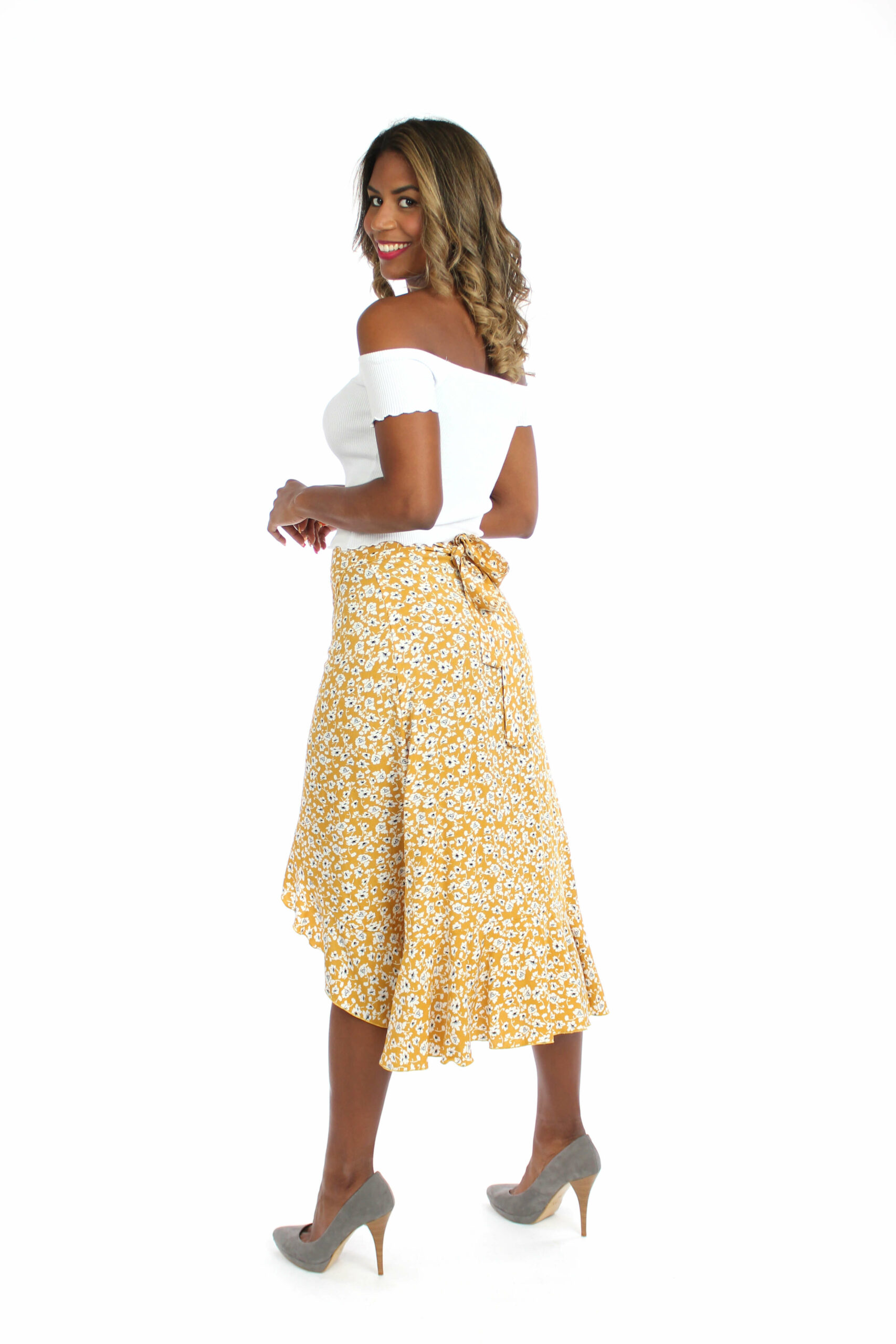 Schreibe die erste Bewertung zu “Midi-Wickelrock mit Volants gelb”