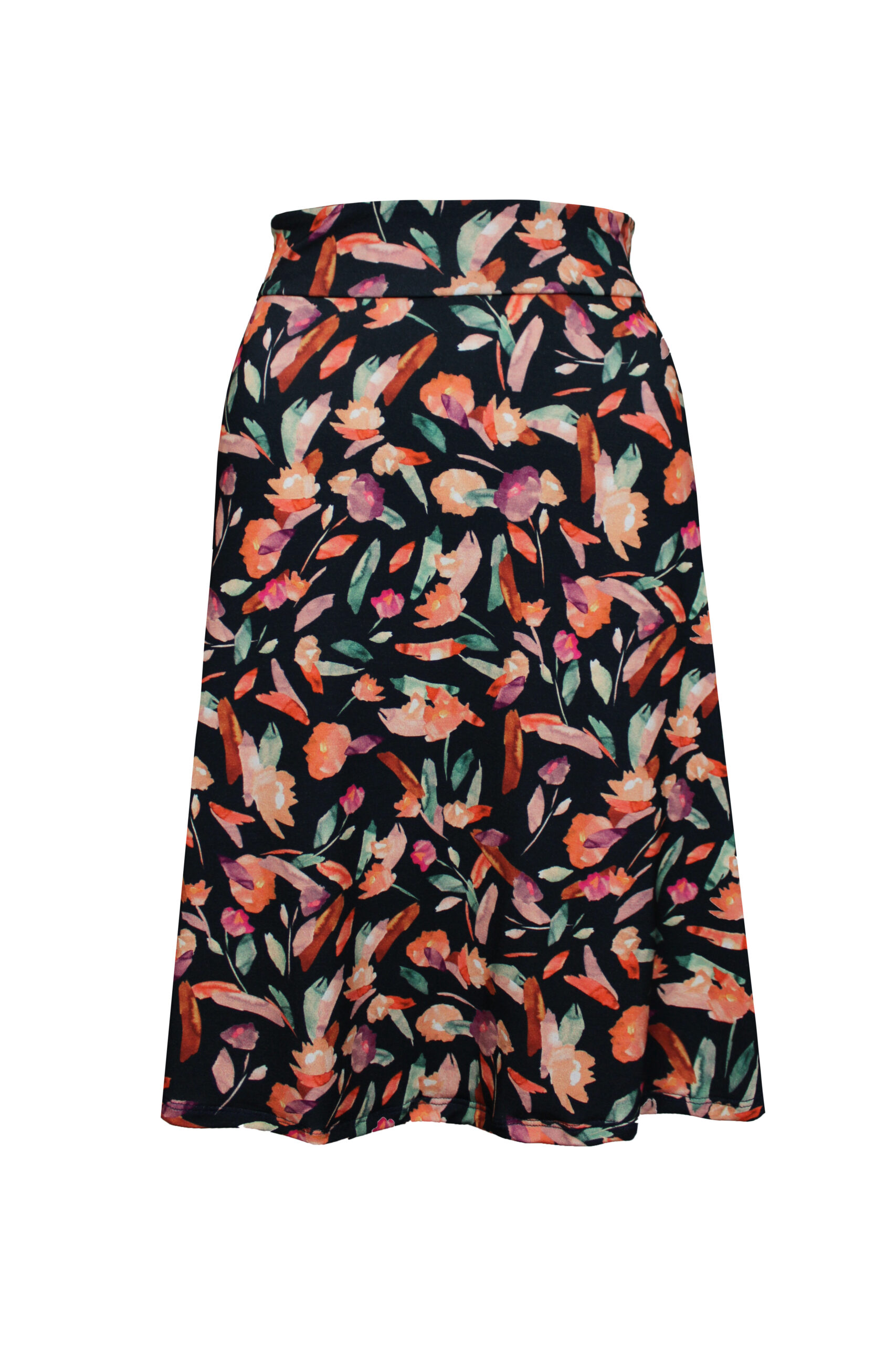 Sommerrock aus bequemen Viskosejersey im sommerlichen Blumenprint in dunkelblau. Der Rock sitzt direkt auf Taillenhöhe, der elastische Bund sorgt für einen angenehmen Sitz. Ein Rock, perfekt für den Alltag.