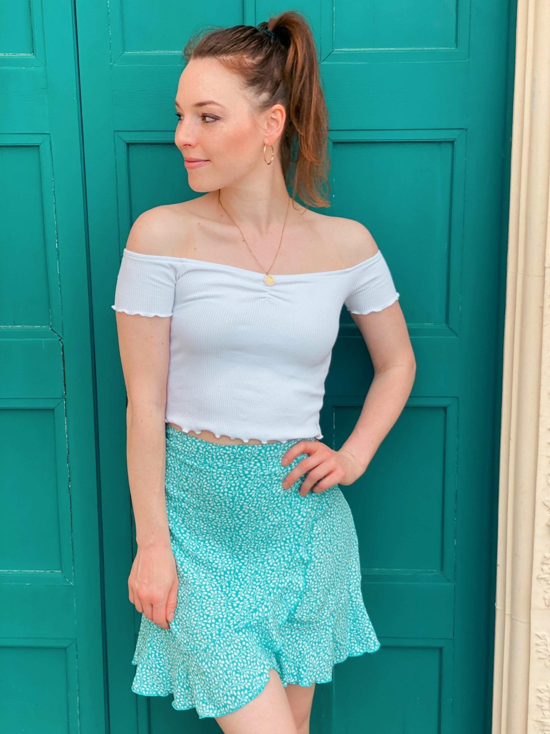 - Farbe: Wickelrock mint mit weißen Blümchen