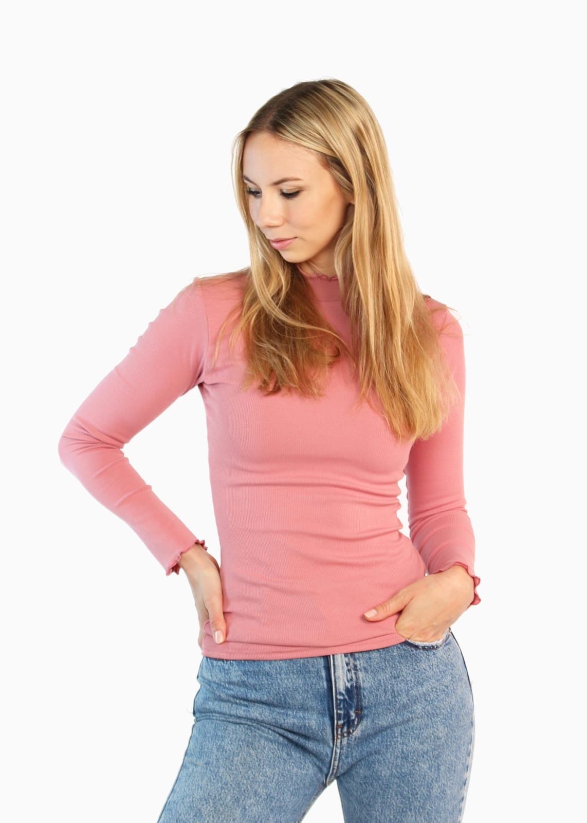 La.Luka Berlin – Rollkragenshirt aus Rippjersey rosé